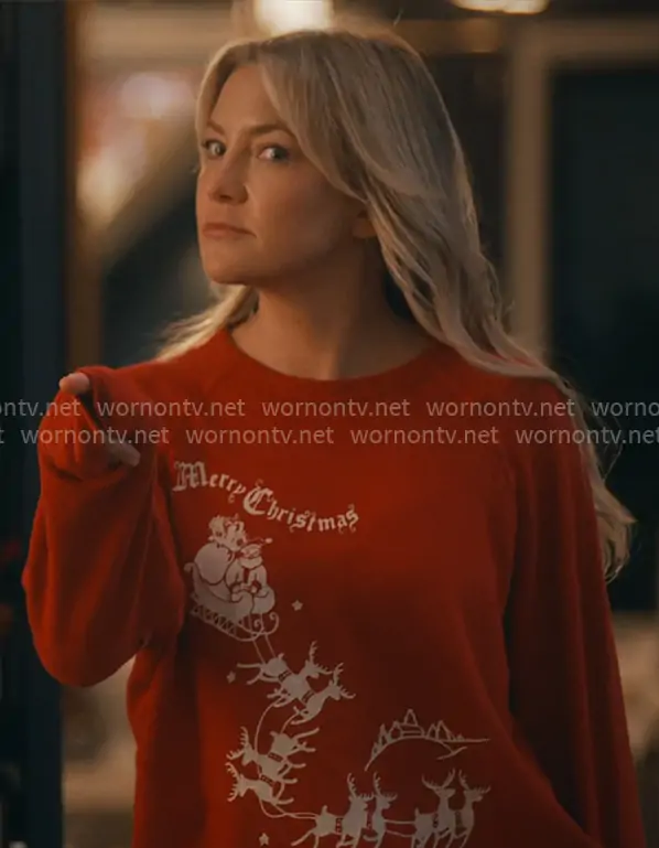 Isla Gordon (played by Kate Hudson) on Running Point on Netflix was spotted wearing this Christmas sweater on Running Point on episode 'The Poacher' (2x02) in Apr 2026. Isla's Sweater is the The College Sweatshirt in True Red by The Great.