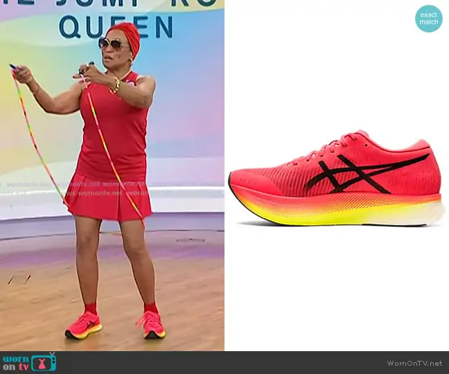 on Today on NBC was spotted wearing this pink and yellow sneakers on Today on Apr 27 2026's episode. 's Shoes is the Metaspeed Sky Sneakers in Performance Red Yellow by Adidas.
