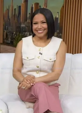 Stephanie Ramos on Good Morning America on ABC was spotted wearing this white tweed vest on Good Morning America on Apr 27 2026's episode. Stephanie's Vest is the Tweed vest in Natural by J. Crew.