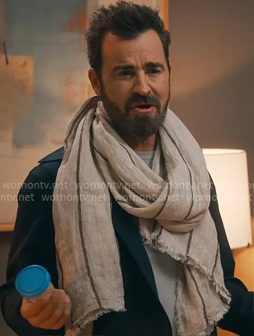 Cam Gordon (played by Justin Theroux) on Running Point on Netflix was spotted wearing this striped scarf on Running Point on episode 'Et tu, Cam?' (2x09) in Apr 2026. Cam's Scarf is the 100% Linen Striped Scarf in Sand by Zara.