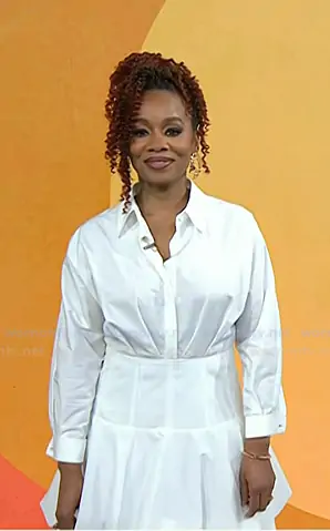 on Today on NBC was spotted wearing this white shirtdress on Today on Apr 28 2026's episode. 's Dress is the Mila Bubble Hem Shirtdress by TWP.