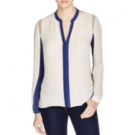 Bonnie Winterbottom (played by Liza Weil) on How to Get Away with Murder on ABC was spotted wearing this blue colorblock blouse on How to Get Away with Murder on episode 'Your Funeral' (5x01) in Sep 2018. Bonnie's Top is the Layne Top by Elie Tahari.