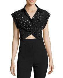 Top: Printed Twist-Front Silk Top by T by Alexander Wang