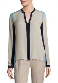 Nikki Reed Newman (played by Melody Thomas-Scott) on The Young and the Restless on CBS was spotted wearing this colorblock blouse on The Young and the Restless on Oct 22 2018's episode. Nikki's Top is the Layne Colorblock Blouse by Elie Tahari.
