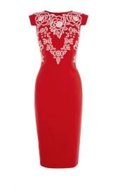 Valerie Grant (played by Vanessa Williams) on Days of our Lives on Peacock was spotted wearing this red floral embroidered dress on Days of our Lives on Dec 28 2017's episode. Valerie's Dress is the Embroidered Pencil Dress by Karen Millen.