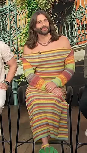 Jonathan Van Ness's striped knit dress on Access Hollywood
