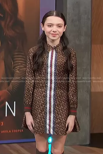 Marie Osmond’s navy plaid shirtdress on Access Hollywood