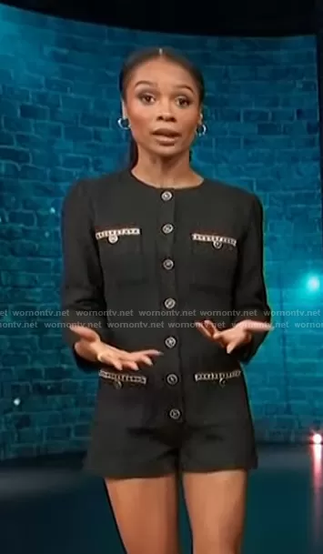 Kit's black bow embellished short sleeve sweater on Access Hollywood