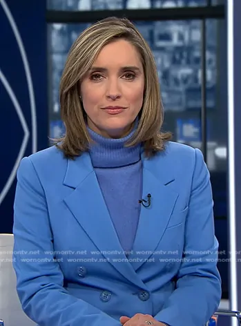 Nicole Sganga's blue double breasted blazer on CBS Evening News