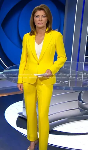 Adriana Diaz's ivory print blazer and pants on CBS Evening News