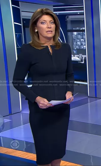 Norah's navy double blazer with gold buttons on CBS Evening News