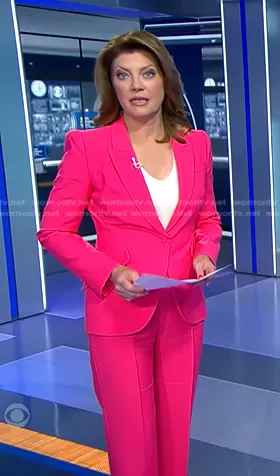 Norah's fuchsia pink suit on CBS Evening News