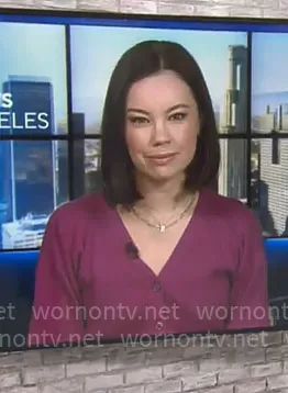 Jo Ling Kent's magenta v-neck cardigan on CBS Mornings