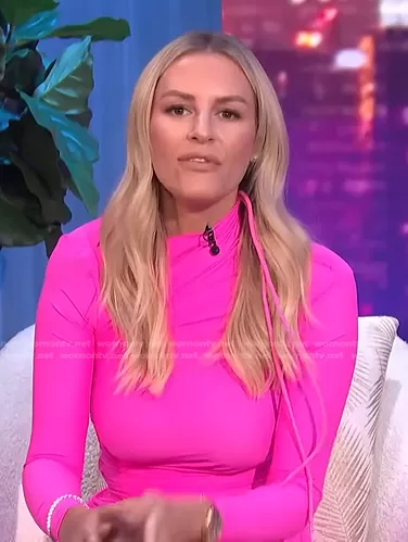Morgan's pink short sleeve jumpsuit on E! News Daily Pop
