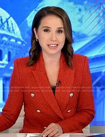 Elizabeth Schulze's red tweed blazer on Good Morning America