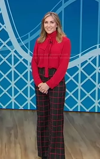 Gretchen Rubin's red cable knit short sleeve sweater on Good Morning America