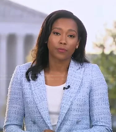 Rachel's blue colorblock blazer and pants on Good Morning America