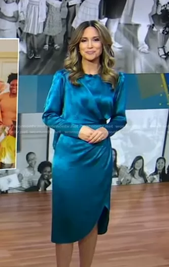 Rhiannon Ally's blue satin wrap dress on Good Morning America