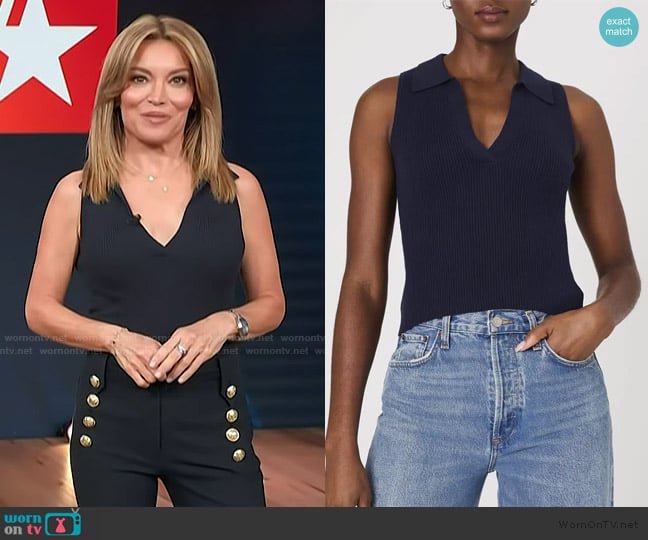 Kit’s navy sleeveless top on Access Hollywood