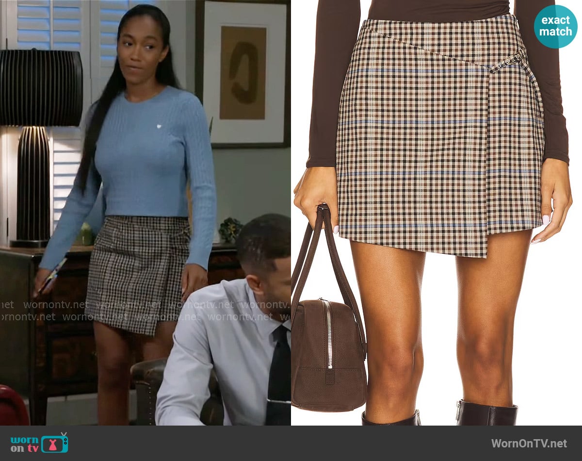 Samantha’s check wrap skirt on Beyond the Gates