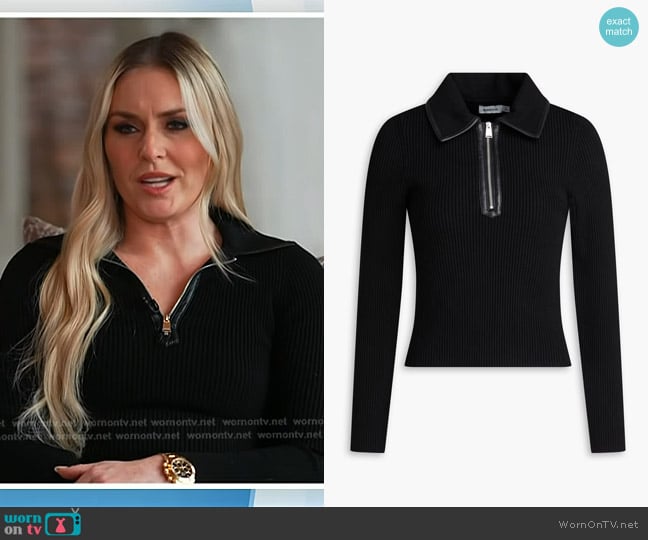 Lindsey Vonn’s black ribbed leather trim zip sweater on Today