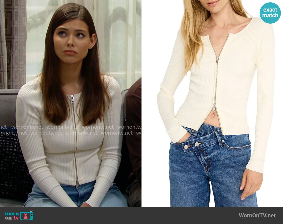 Electra’s white ribbed zip up cardigan on The Bold and the Beautiful
