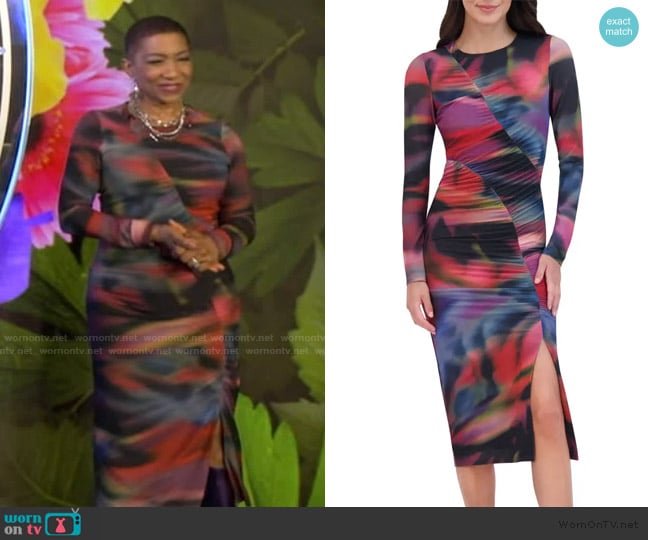 Deja Vu’s abstract print mesh dress on Live with Kelly