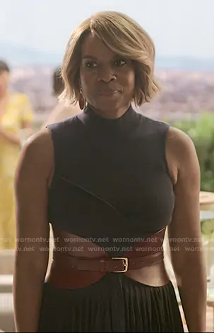Where to buy clothes worn by Sally Braswell (played by Nefetari Spencer) on Hulu's Reasonable Doubt.