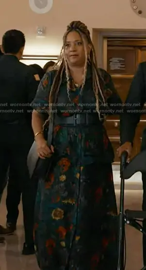 Karen's blue floral print shirtdress on 9-1-1
