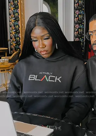 Bozoma's black hoodie on The Real Housewives of Beverly Hills