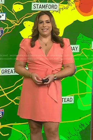 Violeta Yas's coral pink wrap mini dress on NBC News Daily