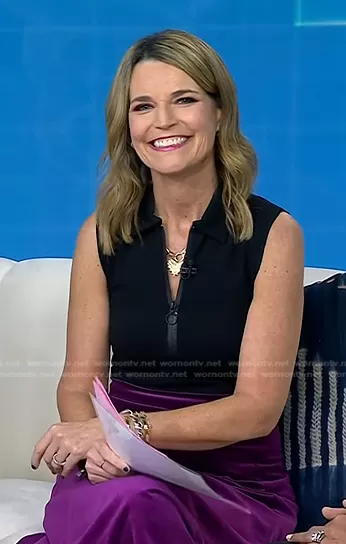Erielle's orange ruffle top and green belted skirt on Good Morning America