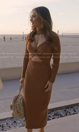 Sandra's brown ribbed cutout dress on Selling Sunset