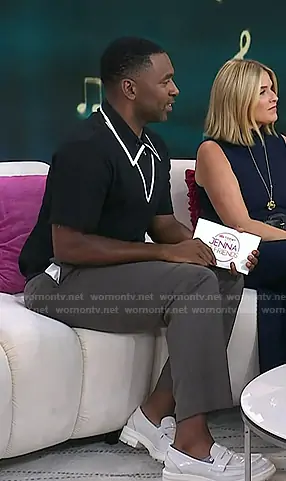 Justin's pink polo and white chunky loafers on Today