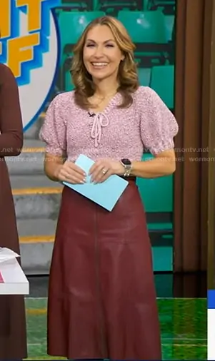Lori's pink short sleeve sweater and leather skirt on Good Morning America