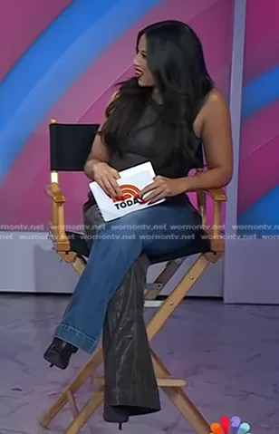 Whitney Cummings's multicolor short knit top on Access Hollywood