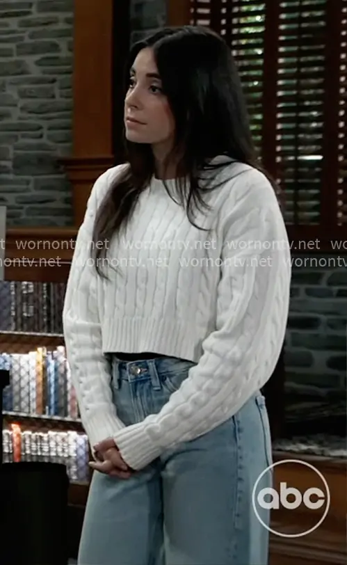 Molly's white cropped cable-knit sweater on General Hospital