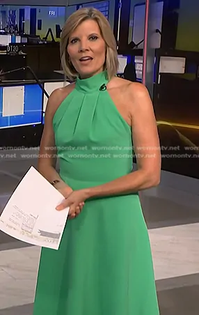 Norah's pink stand collar v-neck dress on CBS Evening News