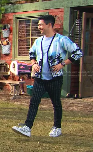 Parker's blue palm print cardigan on Bunkd