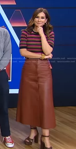 Rebecca's striped top and brown leather skirt on Good Morning America