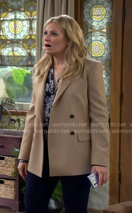 Gretchen's beige denim blazer on The Real Housewives of Orange County