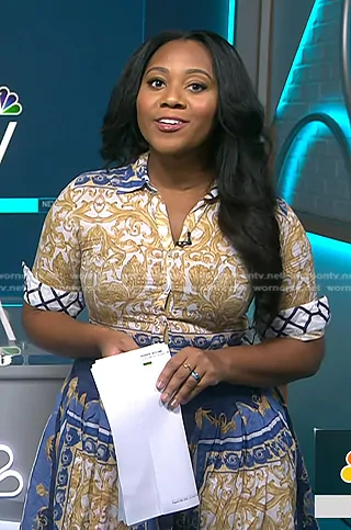 Kay Angrum's printed tie waist shirtdress on NBC News Daily