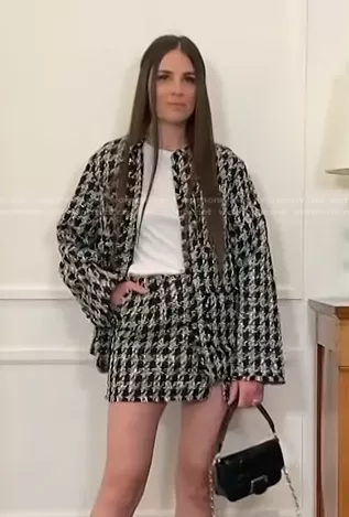 Erica Wark's black plaid tweed jacket and skirt on Access Hollywood