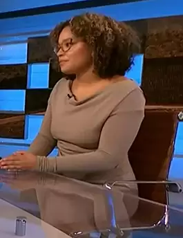 Antonia Hylton's beige cowl neck top and skirt on NBC News Daily