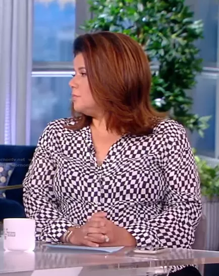 Ginger's keyhole satin blouse and burgundy belted pants on Good Morning America