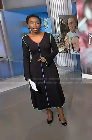 Zinhle's black dress with multicolor piping on NBC News Daily