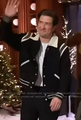Logan Henderson's black contrast trim bomber jacket on The Kelly Clarkson Show