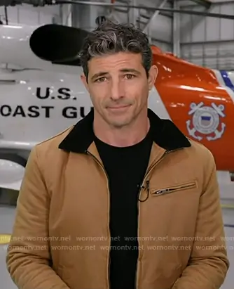 Matt Gutman's camel beige zip front jacket on Good Morning America