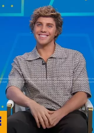 Noah's white tie dye short sleeve shirt on Grand Crew