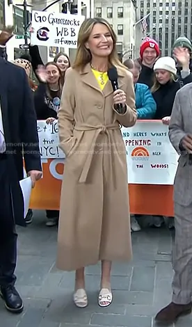 Savannah's black tie neck blouse and beige pleated leather skirt on Today